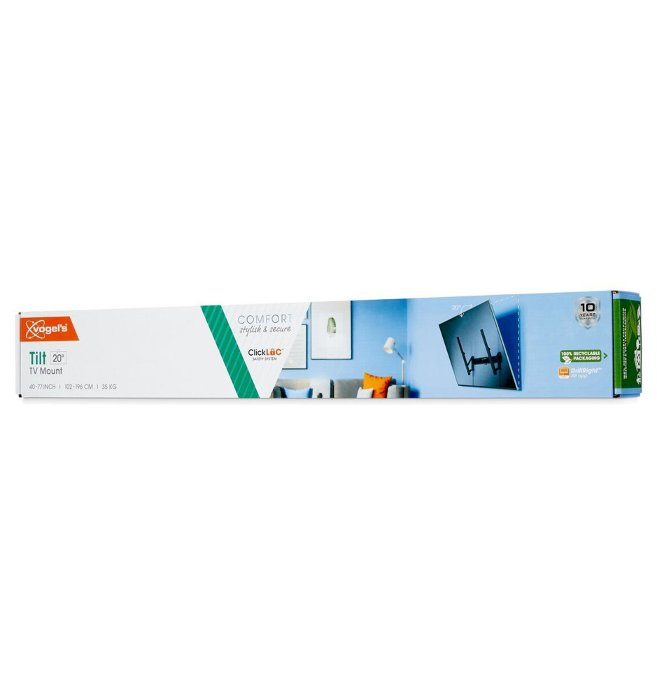 Stylowy i wytrzymały uchylny uchwyt ścienny z serii Comfort z funkcją blokowania ClickLoc™, dedykowany do większych telewizorów o przekątnej ekranu od 40" do 77" i wadze do 35 kg.