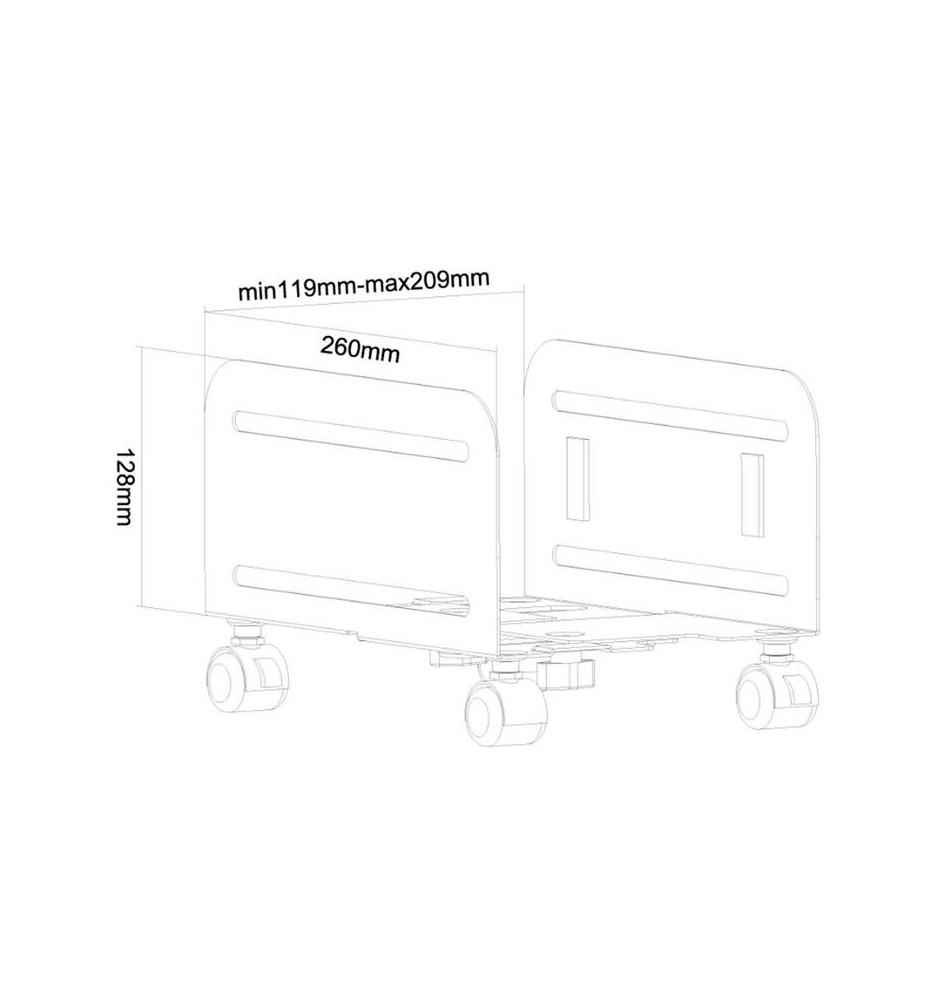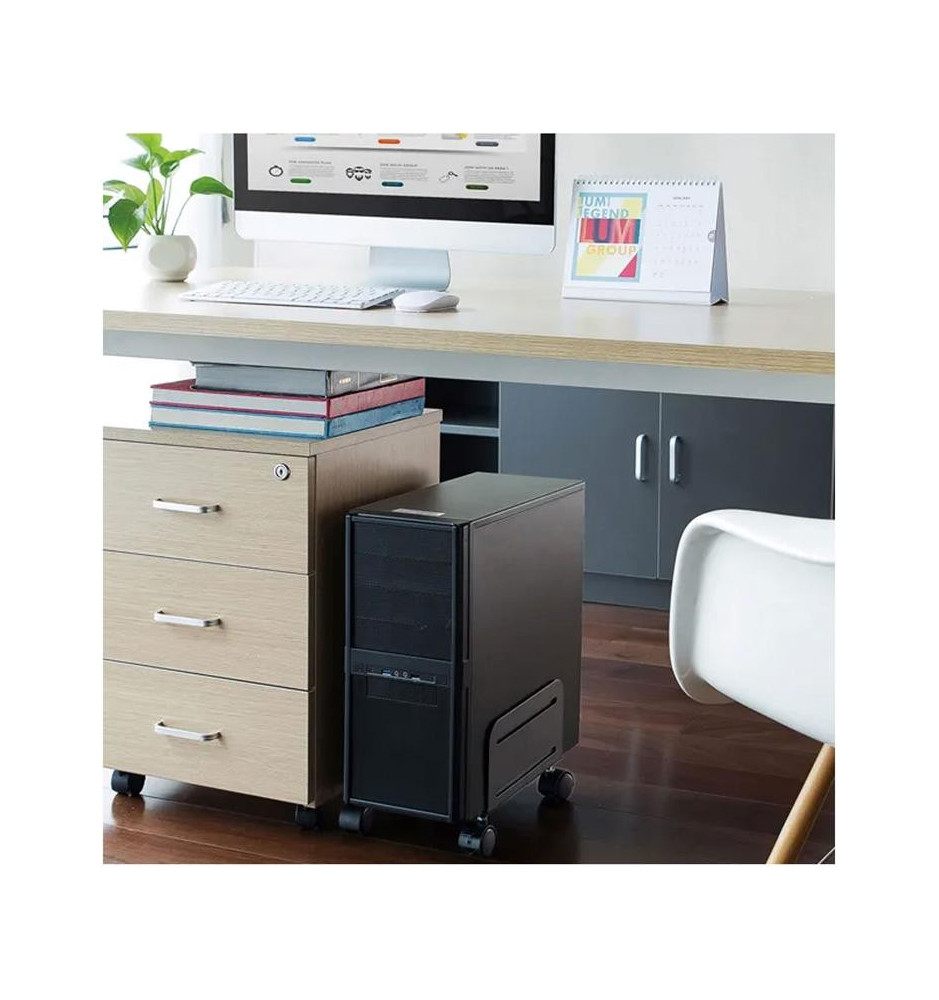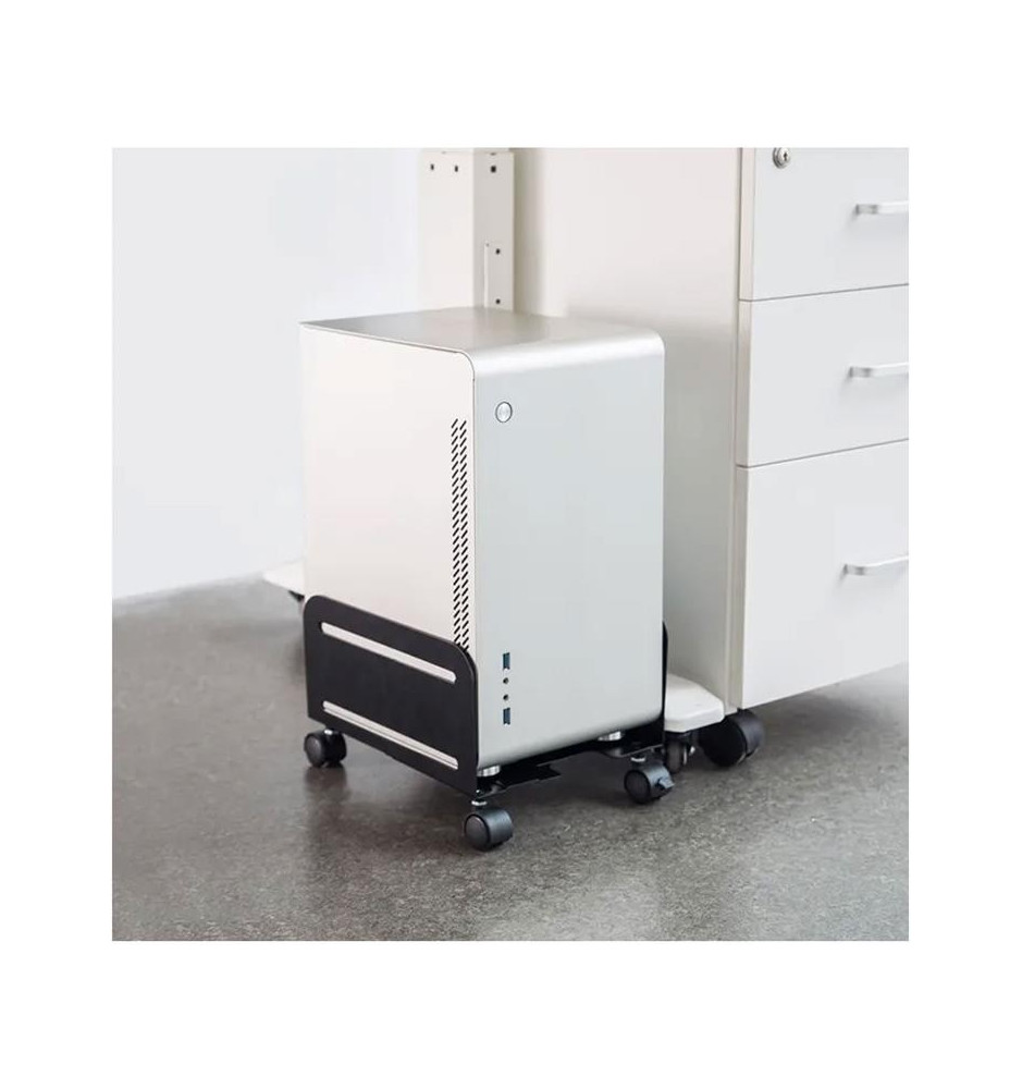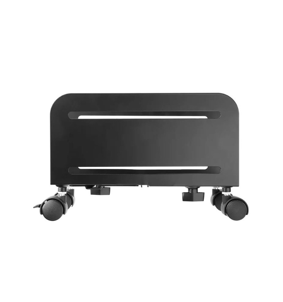 Łatwa regulacja szerokości w tym stojaku mobilnym pozwoli dopasować go do różnych wielkości obudów komputera. Niewątpliwą zaletą używania CPU-M100BLACK jest fakt, że dzięki braku bezpośredniego kontaktu komputera z podłożem nie zbiera on tyle kurzu wewnątrz, co przekłada się na jego lepszą pracę i wydłużoną żywotność. Dodatkowo dzięki kółkom sprzątanie swojego stanowiska pracy jest dużo łatwiejsze.