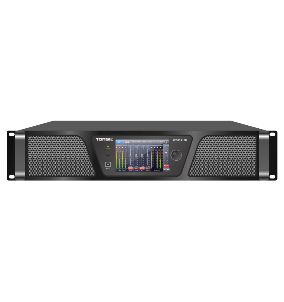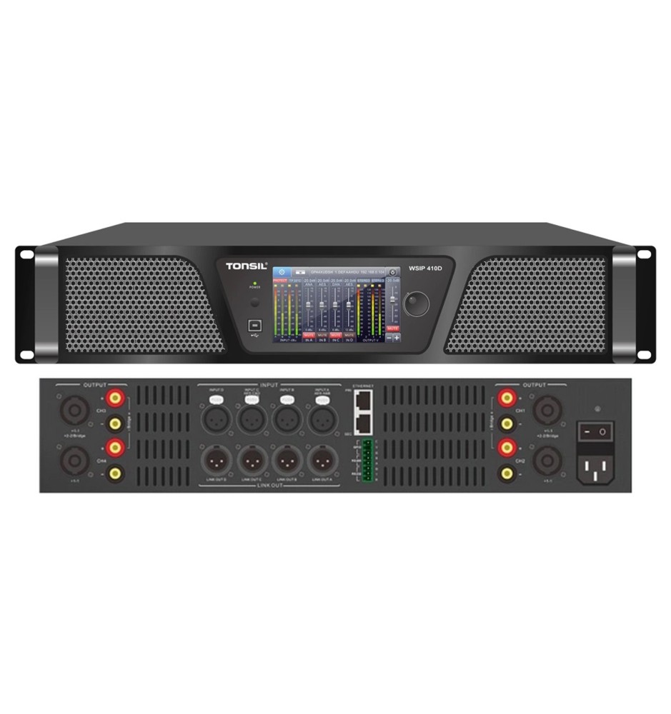 Tonsil WSIP 410D to nowoczesny, 4-kanałowy wzmacniacz sieciowy klasy instalacyjnej, zaprojektowany z myślą o wymagających systemach nagłośnienia komercyjnego i profesjonalnego.