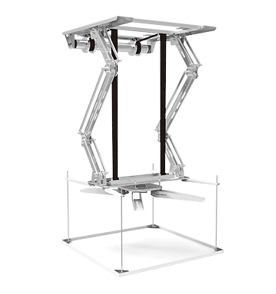 Nowoczesna winda sufitowa z serii Suprema LIFT-TERMINATOR XL do dużego projektora multimedialnego. Stanowi doskonały wybór do domowych i profesjonalnych instalacji w biurach, salach lekcyjnych, pomieszczeniach konferencyjnych lub systemach kina domowego. Dodatkowym atutem modelu LIFT-T1000 XL jest możliwość poprowadzenia przewodów projektora wewnątrz ramion windy.