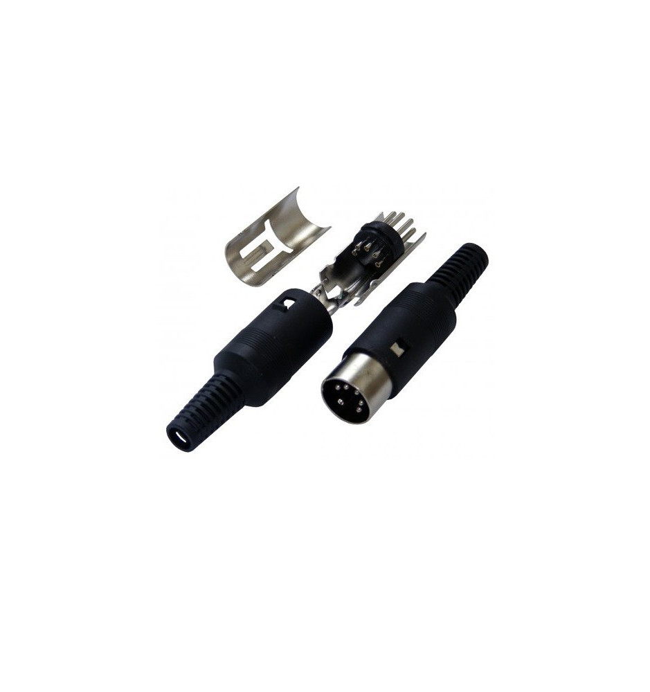 Wtyk DIN 5 pin na kabel z zastosowaniem przesyłania sygnału niskiego napięcia np. audio. Przeznaczony do lutowania.