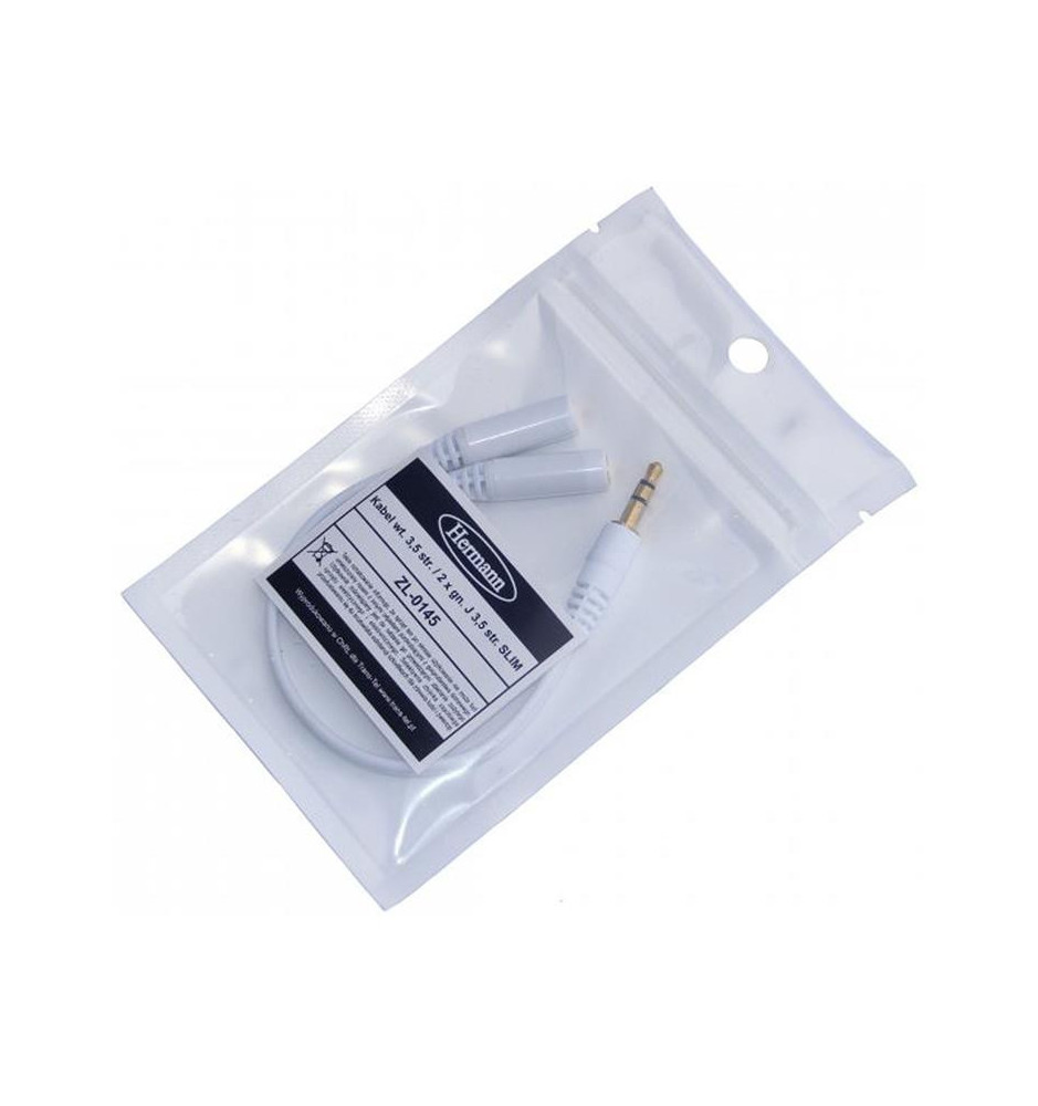 Rozdzielacz 2x gniazdo na 1x wtyk jack 3.5 mm slim - biały