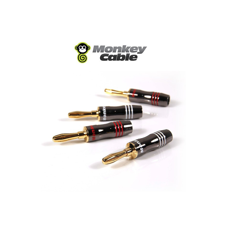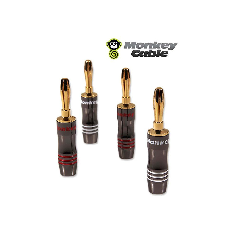 MonkeyCable MBP4 to komplet 4 sztuk wysokiej jakości wtyków bananowych pozłacanych 24-karatowym złotem.