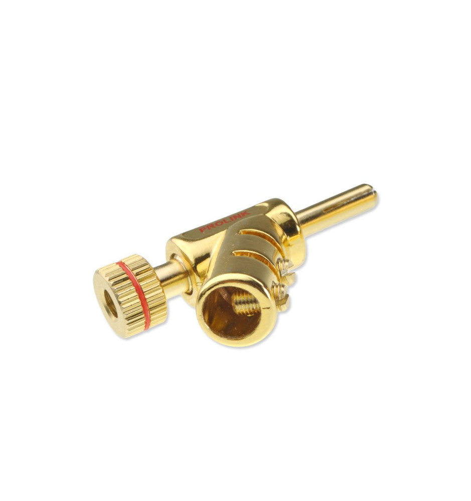 Wtyk bananowy TBC051 Prolink Premium stosowany jako zakończenie przewodu głośnikowego w wysokiej klasy zestawach audio stereo oraz kina domowego.