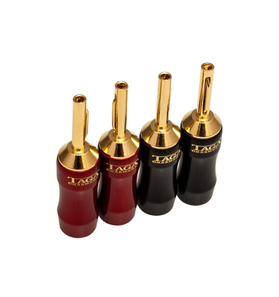 Zestaw 4 sztuk wtyków bananowych Taga Harmony TCB-008 z serii Premium, zapewniających możliwie najlepsze przesyłanie sygnału.