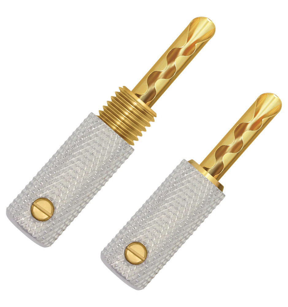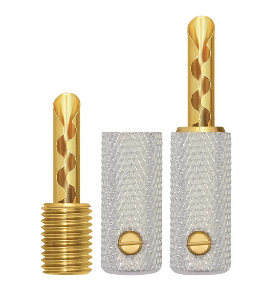 Zestaw dwóch pozłacanych wtyków głośnikowych typu banan z systemem Uni-Term™, umożliwiającym łatwą wymianę samego wtyku.