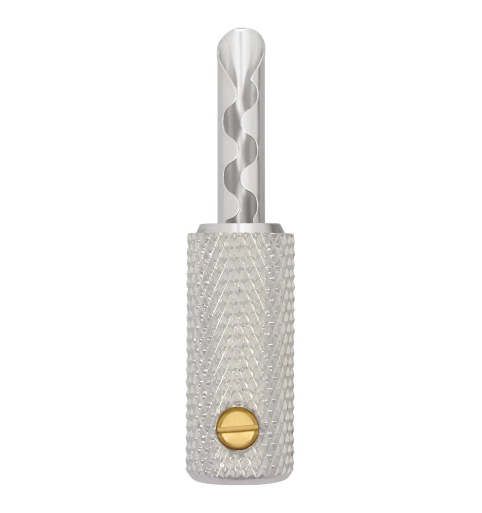 Posrebrzany wtyk głośnikowy typu banan z systemem Uni-Term™, umożliwiającym łatwą wymianę samego wtyku.