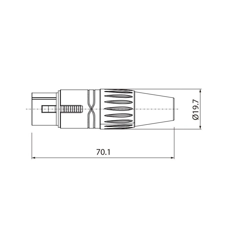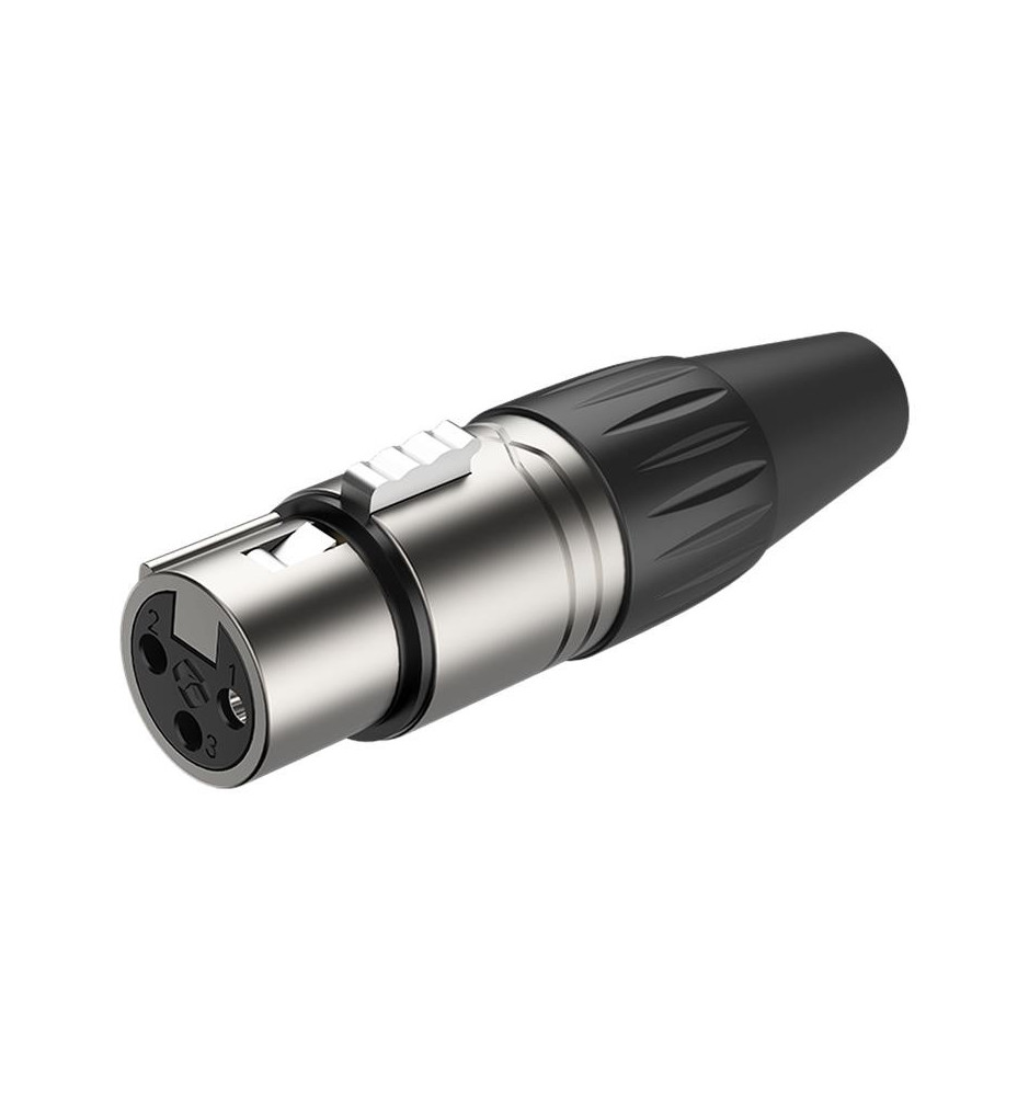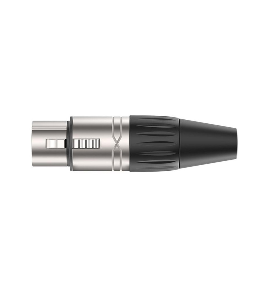 Ergonomia i wytrzymała konstrukcja z powłoką ze stopu cynku to cecha charakterystyczna tego wtyku ze złączem XLR żeńskim. Jest kompatybilny do użycia z kablami o średnicy między 3, a 7 mm. Charakteryzuje się bardzo dobrymi parametrami przenoszenia sygnału.