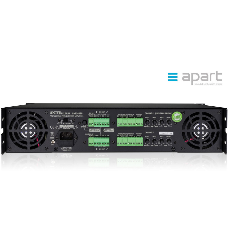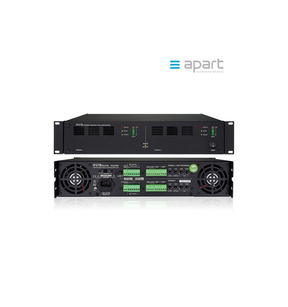 Biamp PA2240BP charakteryzują 2 kanały o mocy wyjściowej 2x 240W oraz 4 Ohm z możliwością mostkowania do pojedynczego kanału, w celu uzyskania wzmacniacza o mocy 1x 480W oraz 8 Ohm.