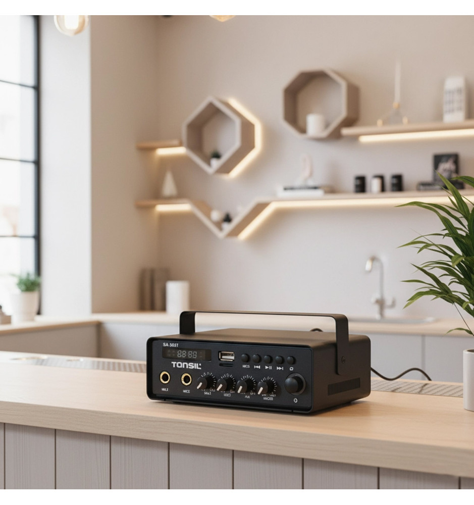 Wzmacniacz zintegrowany SA-30BT polskiej marki Tonsil to kompaktowe i funkcjonalne rozwiązanie do systemów nagłośnienia 1-strefowego, idealne do domu, biura, lokalu usługowego czy małej gastronomii.