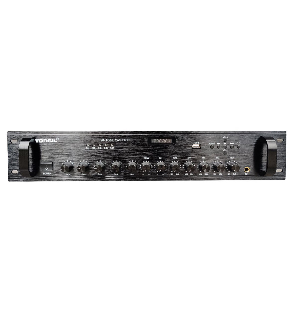 Tonsil WL-100W to profesjonalny 5-strefowy wzmacniacz miksujący zaprojektowany z myślą o dystrybucji dźwięku w kilku strefach jednocześnie.