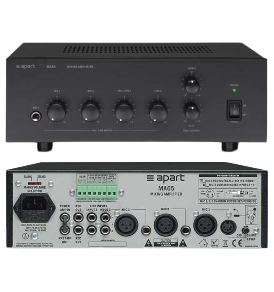 Wzmacniacz miksujący sprawdza się świetnie w mniejszych instalacjach oraz systemach 100V, gdzie ważne jest odtwarzanie muzyki w tle oraz reprodukcjach komunikatów i rozmów nadawanych przez mikrofon.