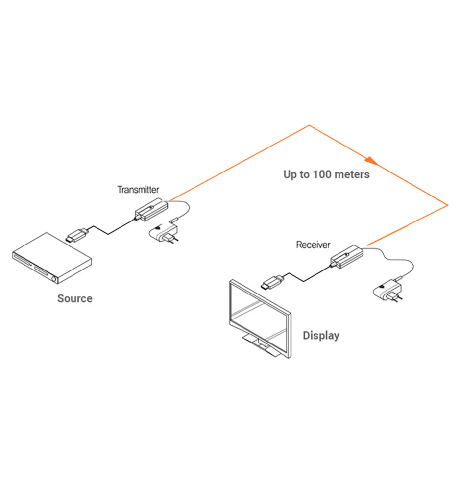 Ekstender wykorzystuje zaawansowaną technologię transmisji optycznej, przesyłając sygnał HDMI na dystansie do 100 metrów (330 stóp) z wykorzystaniem jednego kabla MPO/MTP. To idealne rozwiązanie dla dużych sal konferencyjnych, obiektów eventowych i systemów Digital Signage.