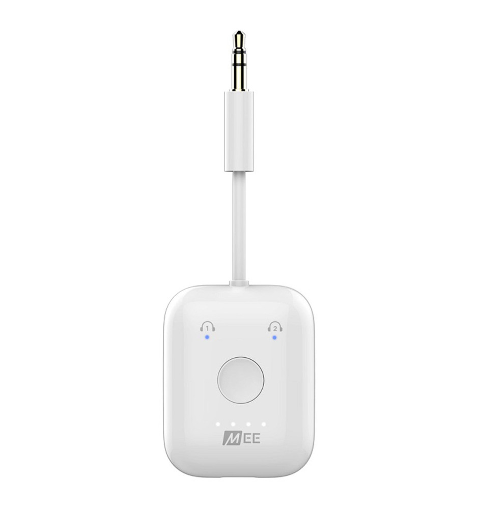 Z pomocą MEE Audio Connect Air będziesz w stanie bezprzewodowo przesyłać dźwięk z urządzeń, które domyślnie nie są wyposażone w technologię Bluetooth (np. systemy rozrywki w samolotach i autobusach długodystansowych). Możliwość sparowania transmisji z dwoma parami słuchawek sprawi, że wraz z osobą towarzyszącą Ci w podróży będziecie mogli bez żadnych przeszkód oglądać ten sam film lub słuchać tej samej muzyki równocześnie w trakcie podróży.