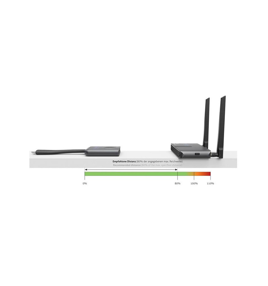 Urządzenie nie wymaga instalacji dodatkowego oprogramowania oraz sterowników. Transmisja sygnału w jakości 2K HD odbywa się poprzez dwuzakresowe pasmo 2.4 / 5 GHz przy użyciu anteny o wysokiej czułości. Zasięg takiego sygnału wynosi do 30 metrów, a jego opóźnienie ma wartość poniżej 0.2 sekundy.