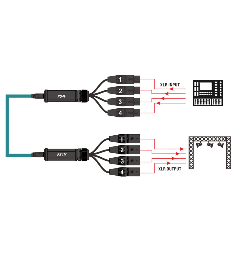 Profesjonalny, wytrzymały i elastyczny adapter DMX z czterema żeńskimi złączami XLR 3PIN oraz gniazdem RJ45, dedykowany do profesjonalnych zastosowań studyjnych i scenicznych. Roxtone PS4F pozwala na podłączenie jednocześnie do czterech źródeł, takich jak mikrofony, instrumenty muzyczne, Di-Boxy czy inne komponenty PA i wypuszczenie sygnału za pośrednictwem dowolnego ekranowanego kabla sieciowego ze złączem RJ45.
