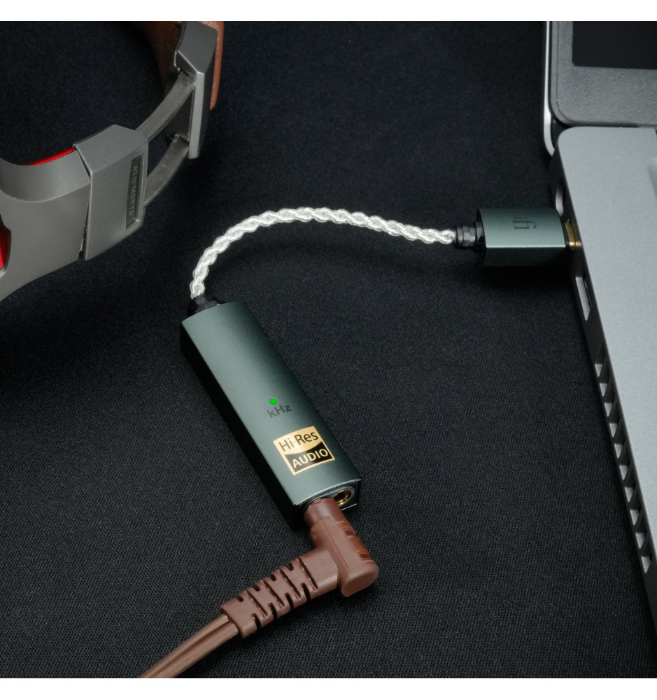 Kompaktowy i elegancki wzmacniacz słuchawkowy z przetwornikiem cyfrowo-analogowym (DAC) typu dongle, który przenosi jakość dźwięku na nowy poziom.