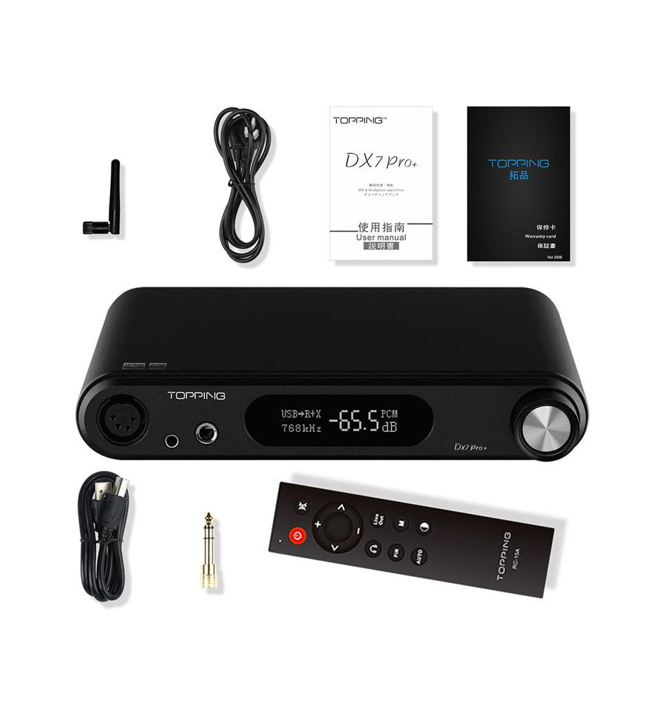Topping DX7 Pro+ to zbalansowany wzmacniacz słuchawkowy z przetwornikiem cyfrowo-analogowym będący ulepszoną wersją modelu DX7 Pro. Modernizacja objęła zastosowanie najnowszych komponentów i ulepszenie architektury, co przełożyło się na znaczącą poprawę ogólnej wydajności urządzenia. Sama stylistyka obudowy również została poprawiona, dzięki czemu DX7 Pro+ lepiej wpisuje się w obecne trendy.