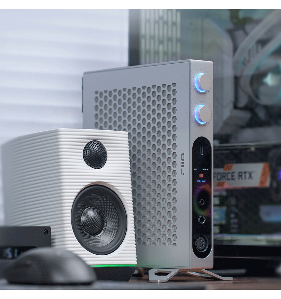 Najwyższej jakości, flagowy biurkowy wzmacniacz słuchawkowy z przetwornikiem cyfrowo-analogowym DAC klasy studyjnej od FiiO, nagrodzony certyfikatami Hi-Res Audio i Hi-Res Audio Wireless.