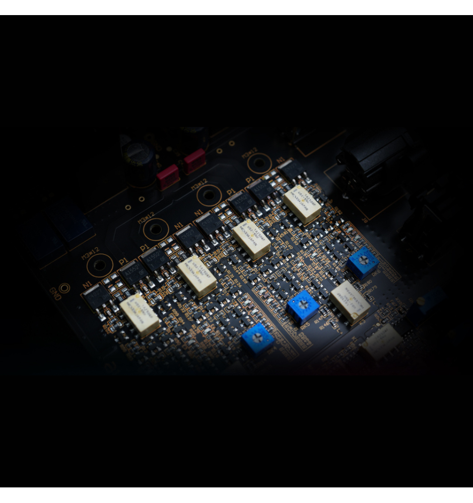 Specjalnie zaprojektowany układ wyjściowy pracuje w prawdziwym Class-A w dwóch etapach, co daje gładkie przejścia dynamiki i bogate, pełne brzmienie. Efekt to harmonijna góra pasma i naturalna średnica bez śladów cyfrowej ostrości.