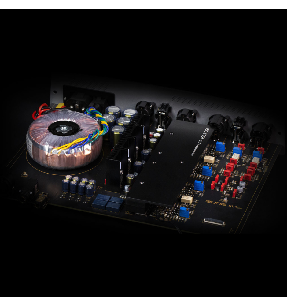 Aune S17 Pro EVO wykorzystuje 50-watowy transformator toroidalny o niskim poziomie tętnień oraz kondensatory o pojemności 19 200 μF. Oddzielne sekcje zasilania dla części cyfrowej i analogowej eliminują zakłócenia, zapewniając czysty, dynamiczny i pełen energii dźwięk.
