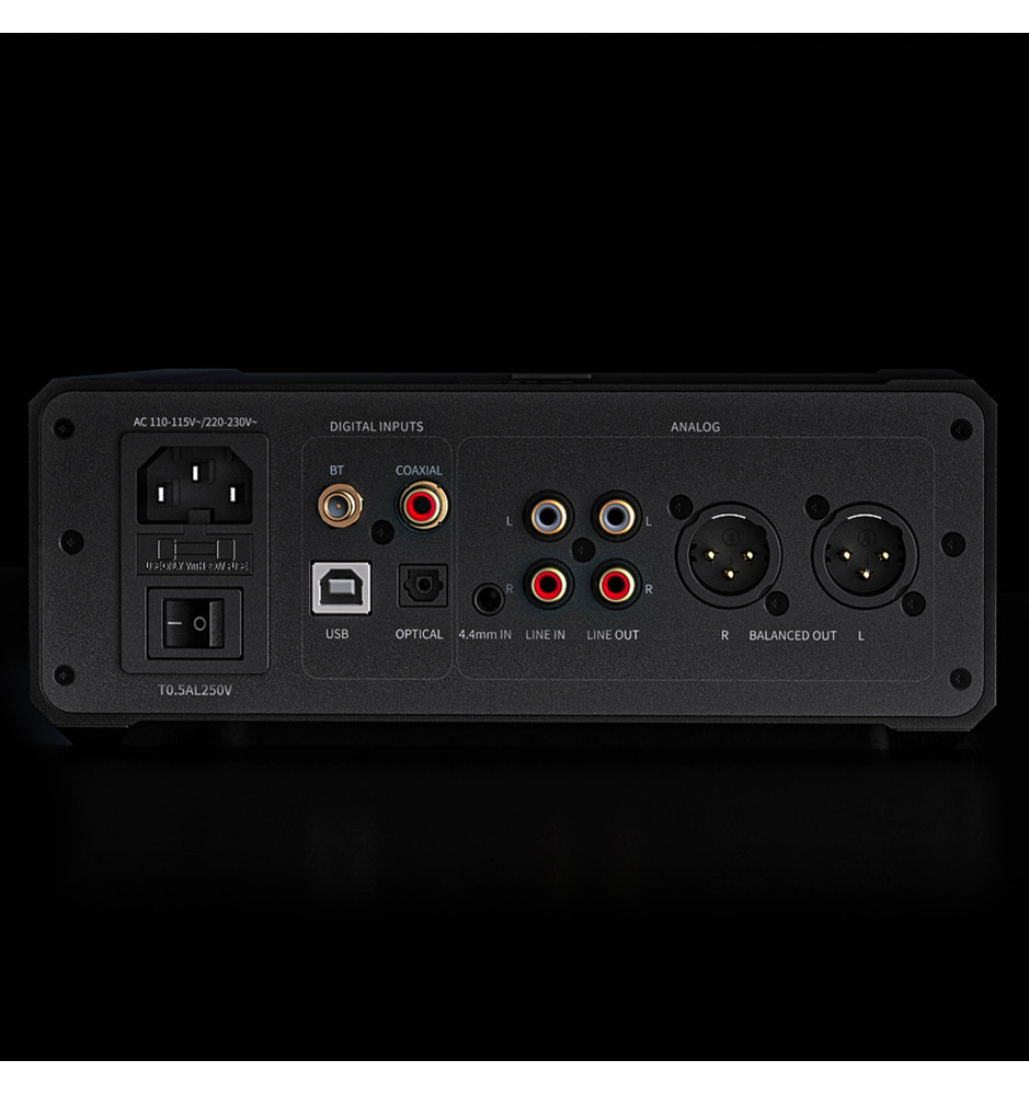 Wysokiej klasy biurkowy wzmacniacz słuchawkowy z przetwornikiem cyfrowo-analogowym DAC i odbiornikiem Bluetooth.