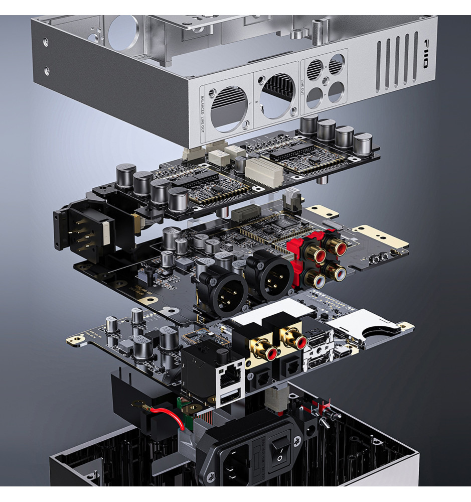 FiiO R9 jest wyposażony w nowoczesny układ USB z 16-rdzeniowym procesorem XMOS XU316 trzeciej generacji. Umożliwia on płynne przetwarzanie sygnału i obsługuje 32-bitowe dekodowanie PCM oraz natywnego DSD. Oprócz wejścia USB, koncentrycznego i optycznego urządzenie oferuje również port HDMI ARC - idealny do współpracy z telewizorami.