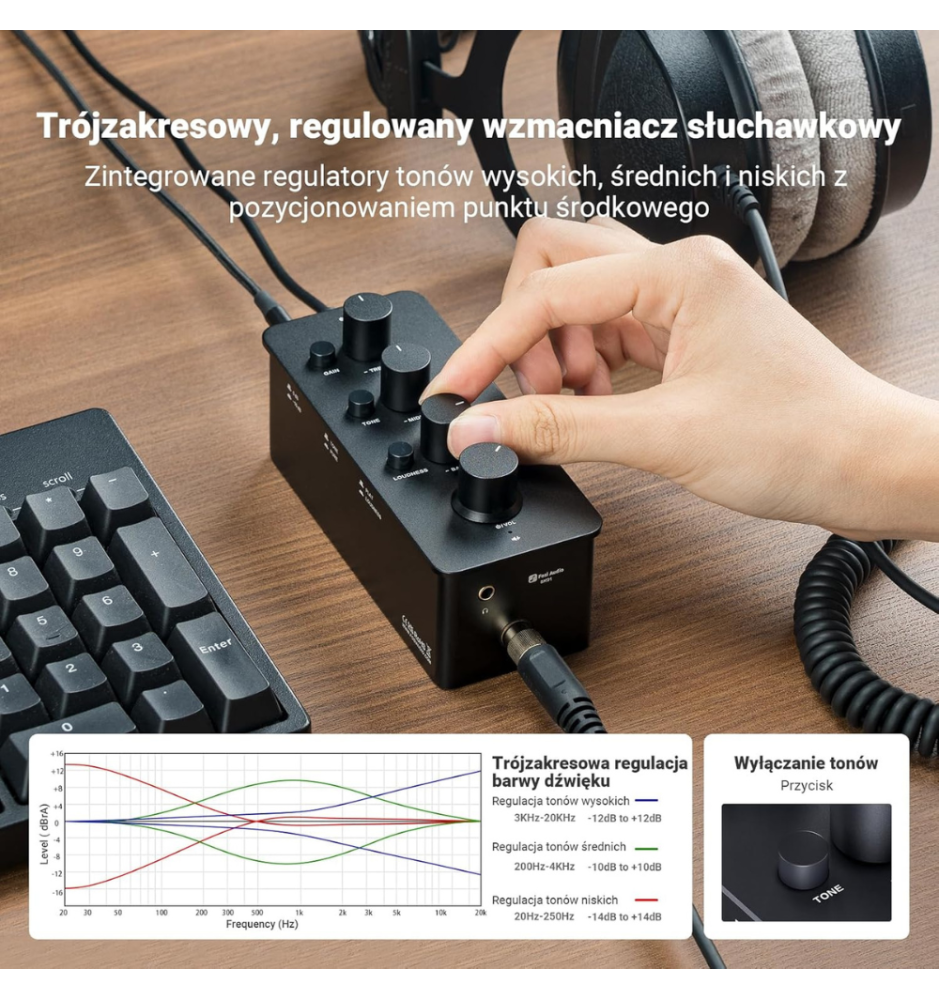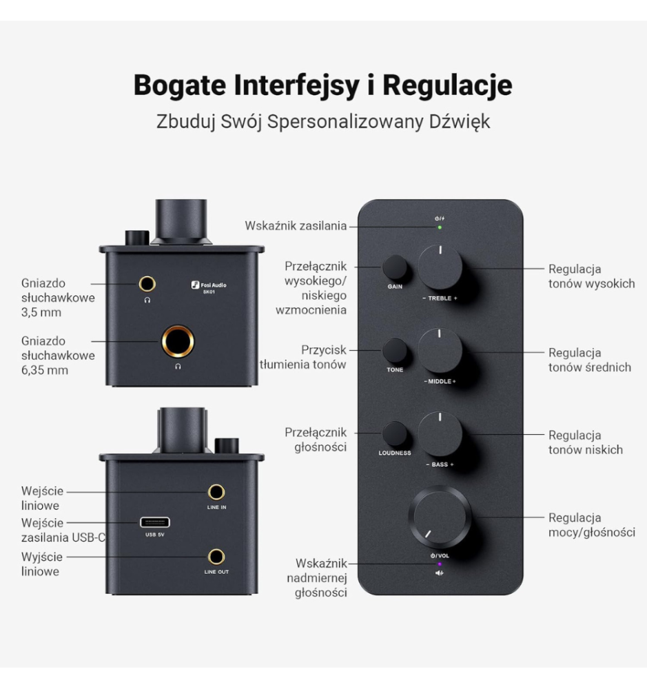 Fosi Audio SK01 – przenośny wzmacniacz słuchawkowy z regulacją tonu