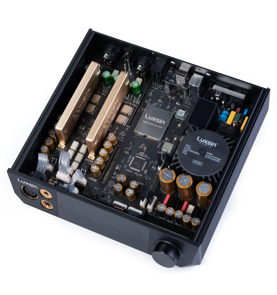 Luxsin X8 wykorzystuje 8 przetworników DAC Cirrus Logic CS43198 pracujących w architekturze dual-mono, zapewniając wyjątkową separację kanałów, szeroki zakres dynamiki i niezwykle niski poziom zniekształceń. Wzmacniacz słuchawkowy oparty na układach OPA1612 oraz TPA6120A2 oferuje imponującą moc do 4840 mW na kanał, dzięki czemu bez trudu napędzi nawet najbardziej wymagające słuchawki klasy high-end.