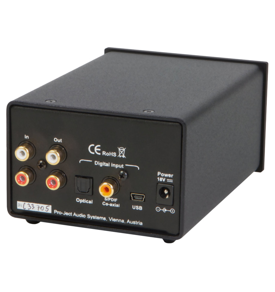 Pro-Ject Head Box DS posiada stereofoniczne wejście analogowe RCA oraz wejścia cyfrowe koaksjalne S/PDIF, optyczne Toslink i USB, działające w trybie asynchronicznym 24bit/192kHz. Zarówno dla analogowych, jak i cyfrowych źródeł dźwięku zapewnia w słuchawkach perfekcyjny dźwięk z niezwykle realistyczną sceną dźwiękową.