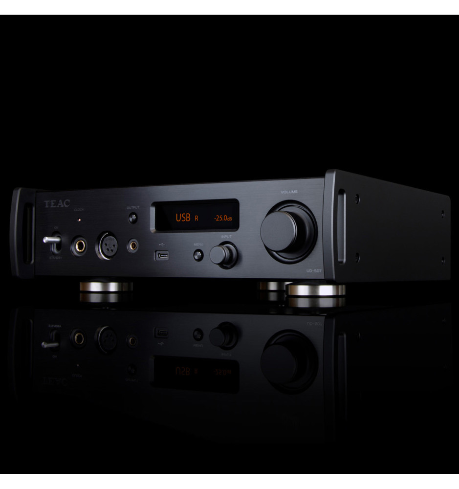 TEAC UD-507 to wszechstronny, kompaktowy przetwornik cyfrowo-analogowy (DAC), wzmacniacz słuchawkowy oraz przedwzmacniacz klasy Hi-Fi, opracowany i wyprodukowany w Japonii.