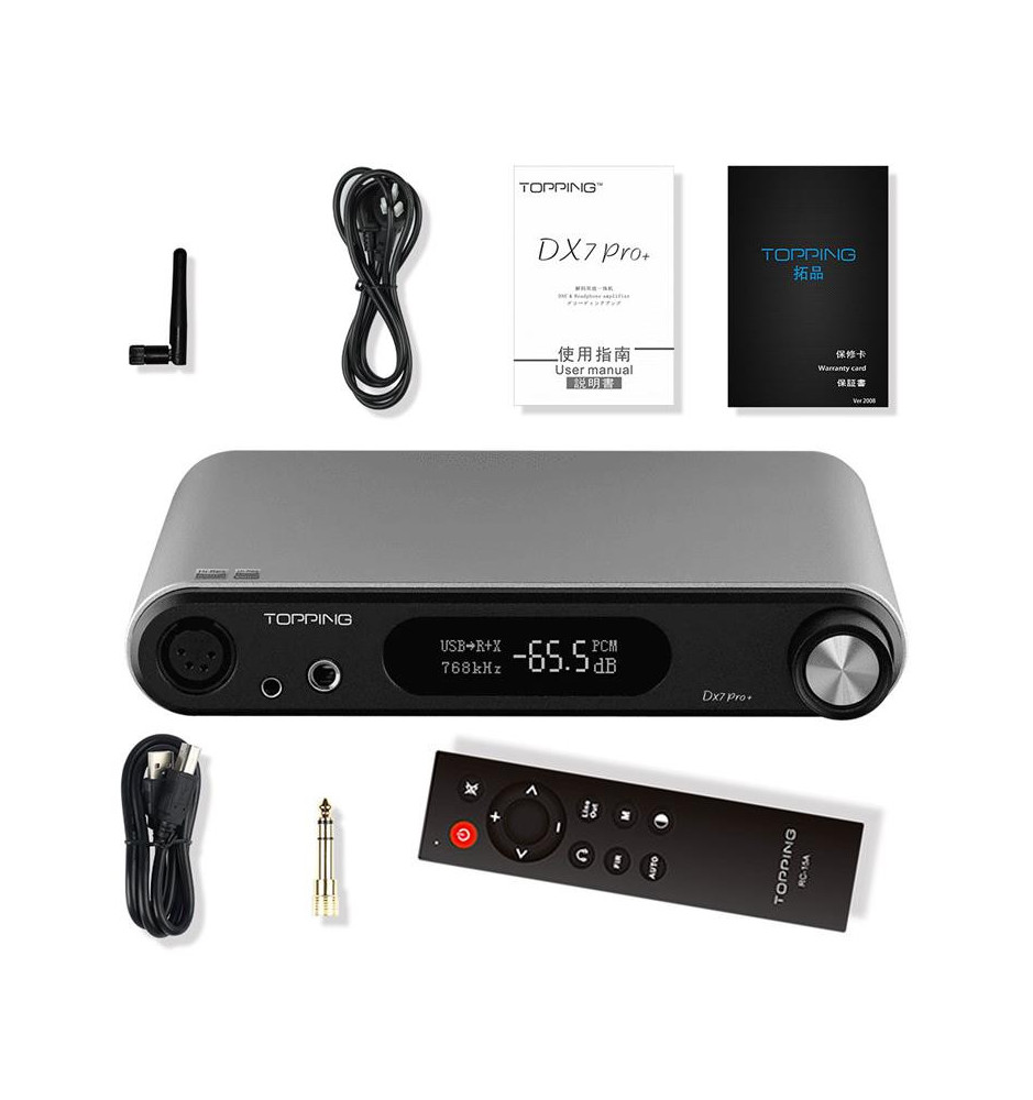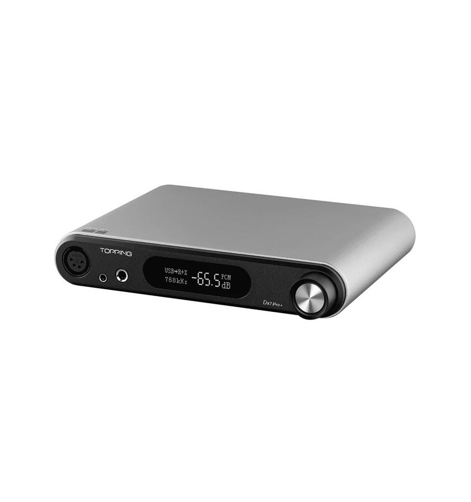 Topping DX7 Pro+ to zbalansowany wzmacniacz słuchawkowy z przetwornikiem cyfrowo-analogowym będący ulepszoną wersją modelu DX7 Pro. Modernizacja objęła zastosowanie najnowszych komponentów i ulepszenie architektury, co przełożyło się na znaczącą poprawę ogólnej wydajności urządzenia. Sama stylistyka obudowy również została poprawiona, dzięki czemu DX7 Pro+ lepiej wpisuje się w obecne trendy.