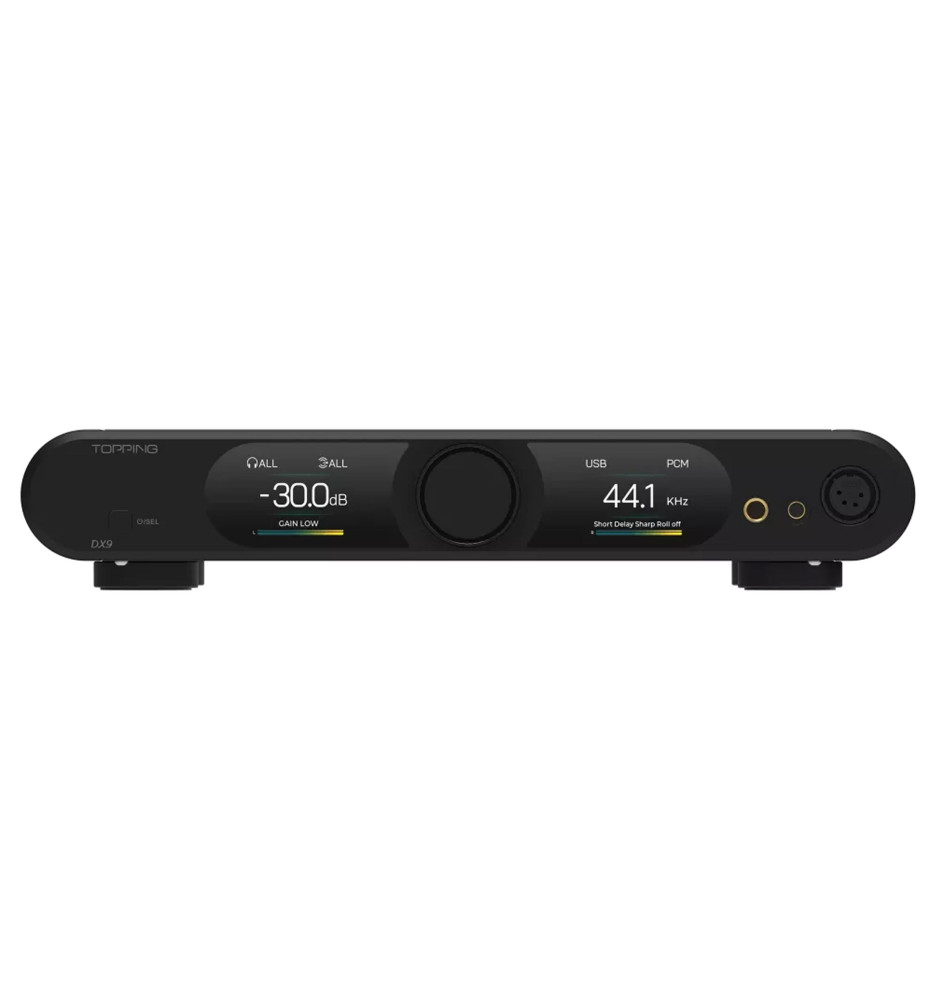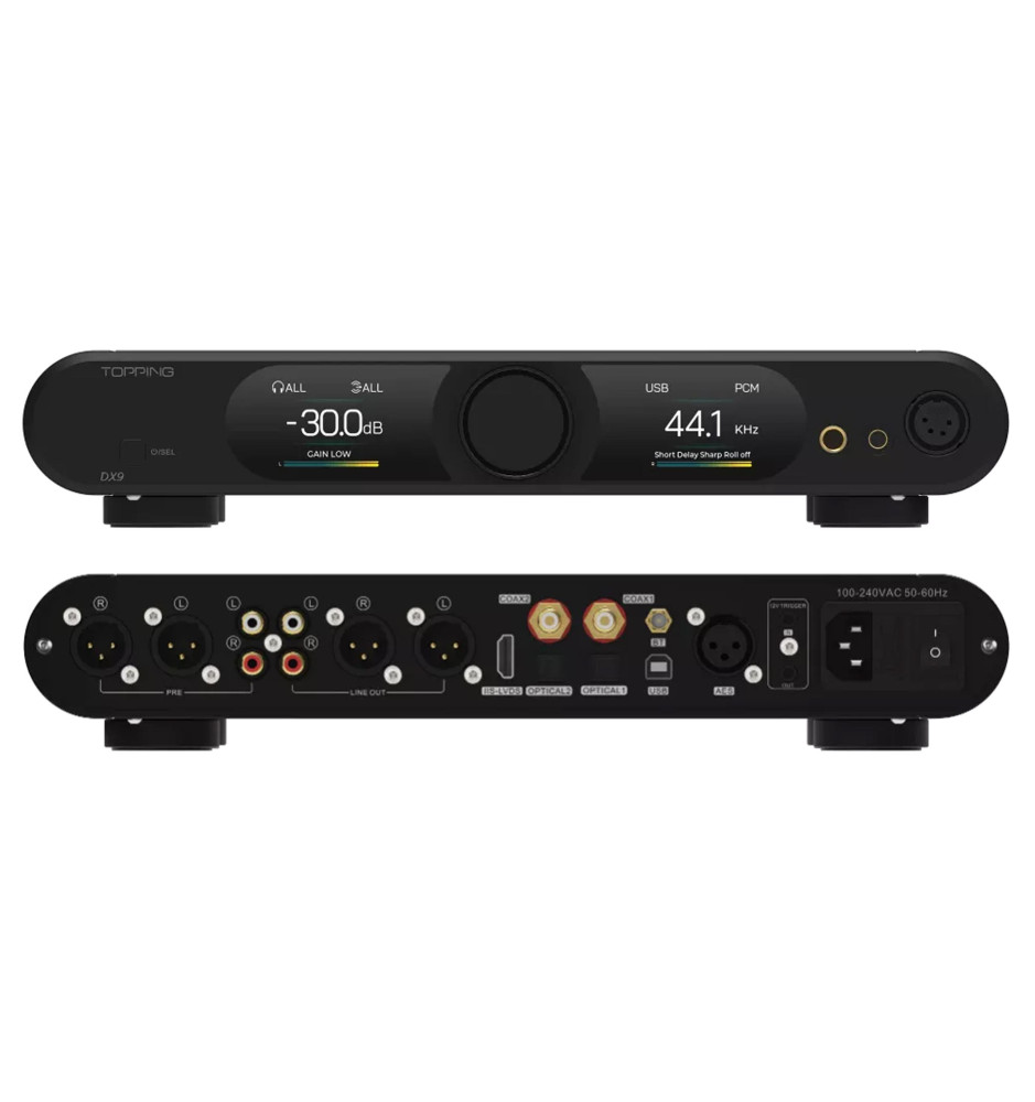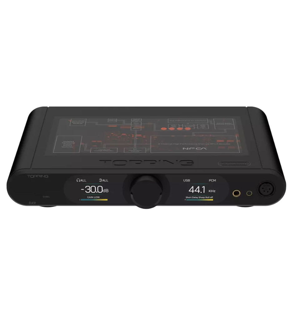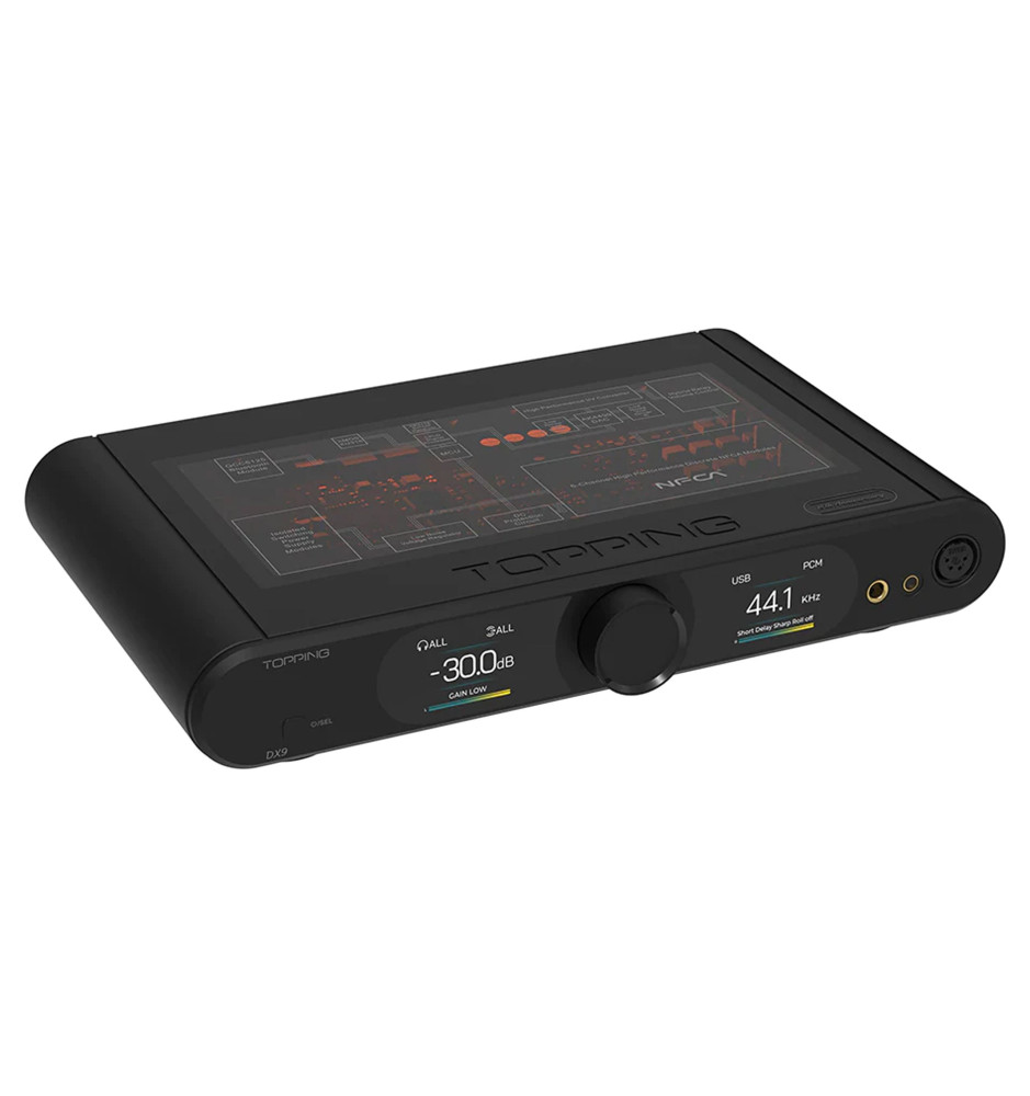 Najnowszy Topping DX9 15th Anniversary, oprócz wyjątkowego designu, posiada układ DAC AK4499EQ, hybrydowy przekaźnik głośności, 6-kanałowy dyskretny układ NFCA wzmacniacza słuchawkowego o wysokiej wydajności oraz niezależne zasilanie dla wzmacniacza słuchawkowego i układów DAC.