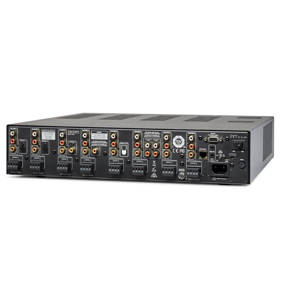 Intuicyjny interfejs webowy umożliwia skonfigurowanie MDA16 z każdego urządzenia, przypisywanie wejść, nazewnictwo stref, regulację poziomów głośności, tonów wysokich i niskich. Urządzenie wspiera IP / RS-232, 12-V trigger, oraz czujnik audio do włączania/wyłączania – kompatybilne z systemami automatyki typu Crestron, Control4, Savant, URC i innymi.