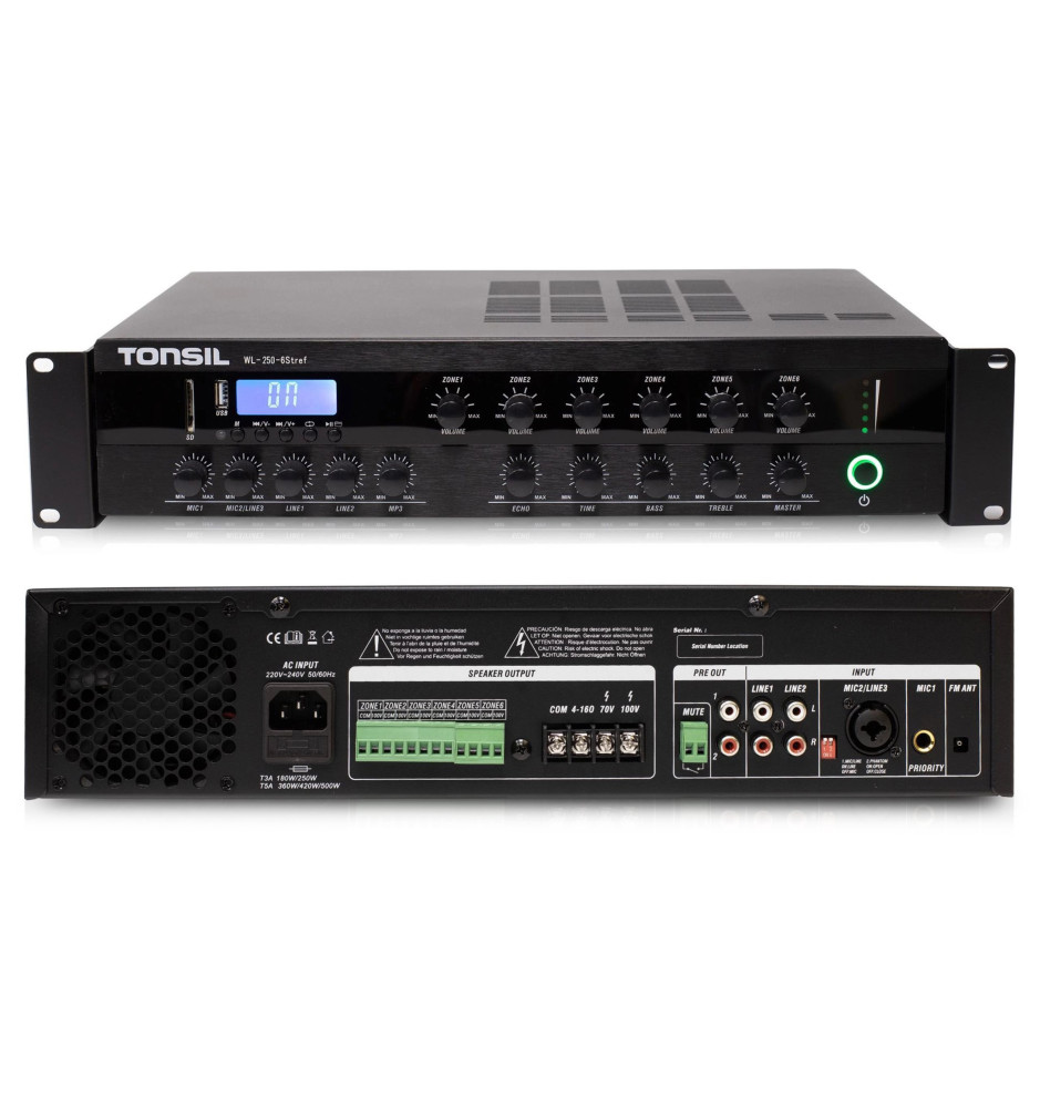 Tonsil WL-250W - 6-strefowy wzmacniacz instalacyjny z USB i SD