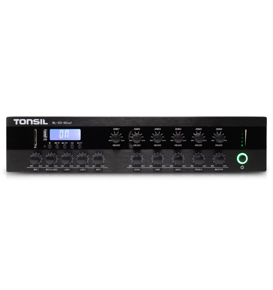 Tonsil WL-500W - 6-strefowy wzmacniacz instalacyjny z Bluetooth, USB, SD i FM