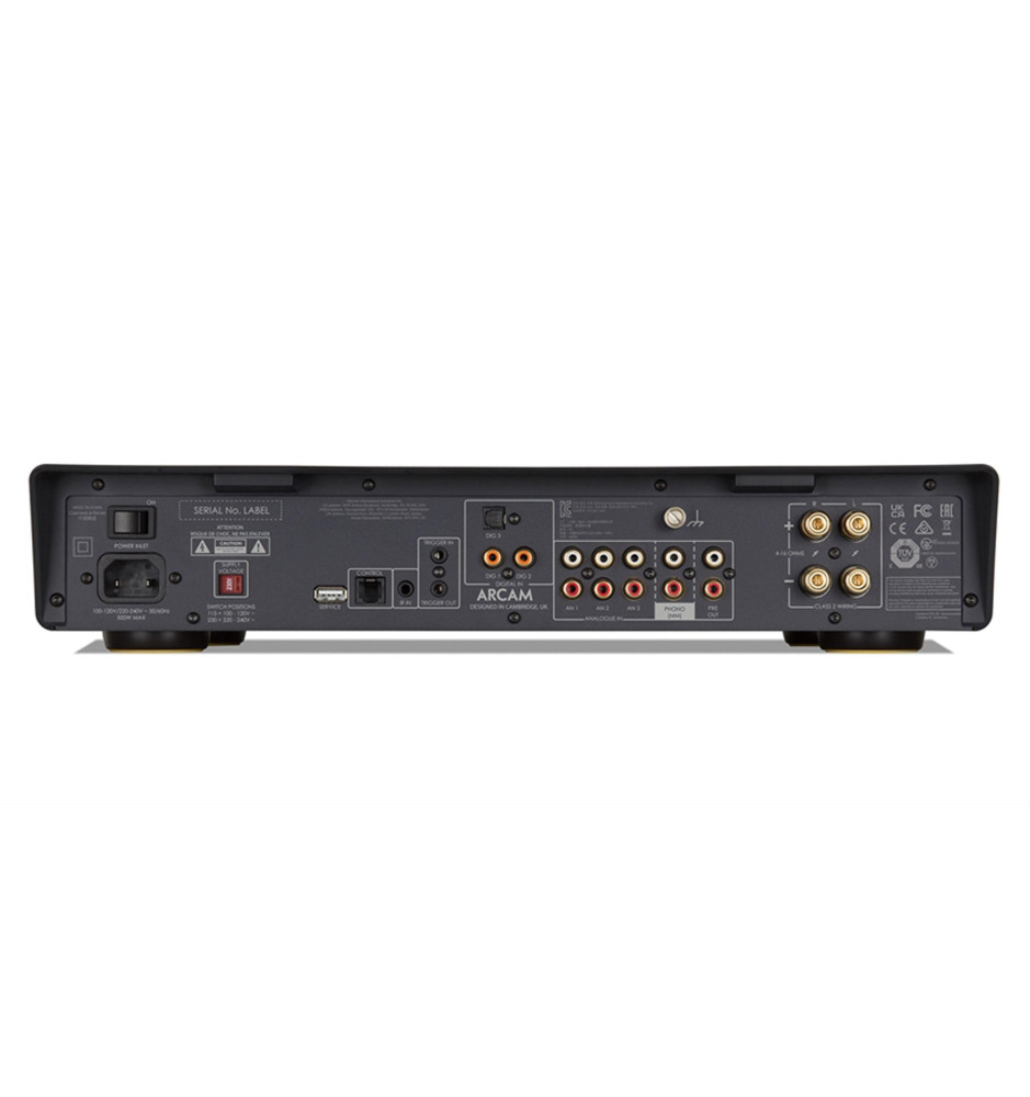 Arcam A5 został wyposażony w szereg złącz, które można wykorzystać do podłączenia różnych urządzeń. Do wykorzystania są trzy pary wejść RCA, koaksjalne i optyczne umożliwiające podłączenie np. odtwarzaczy DVD, Blu-ray czy konsol do gier.