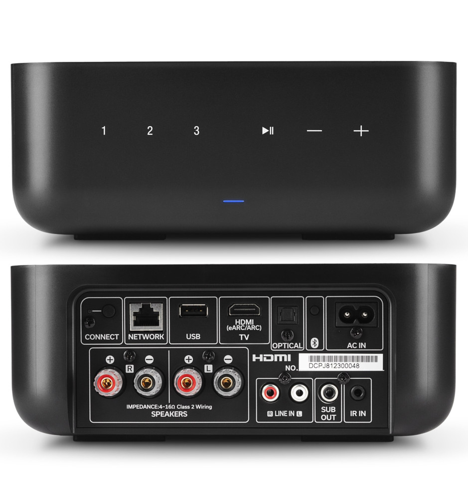 Kompaktowy bezprzewodowy wzmacniacz strumieniowy High-Res o mocy 100W z wbudowanym HEOS® Multi-Room, idealny do zasilenia pary głośników oraz połączenia z aktywnym subwooferem w celu stworzenia samodzielnego systemu 2.1.