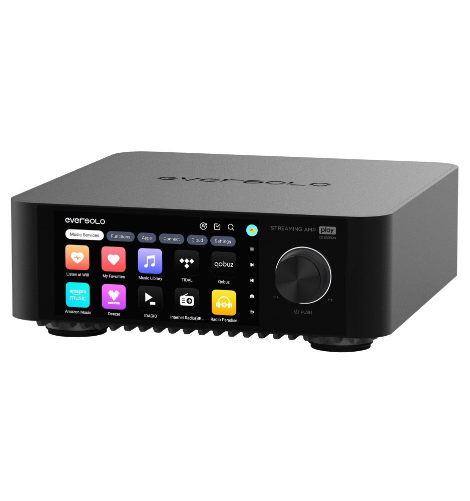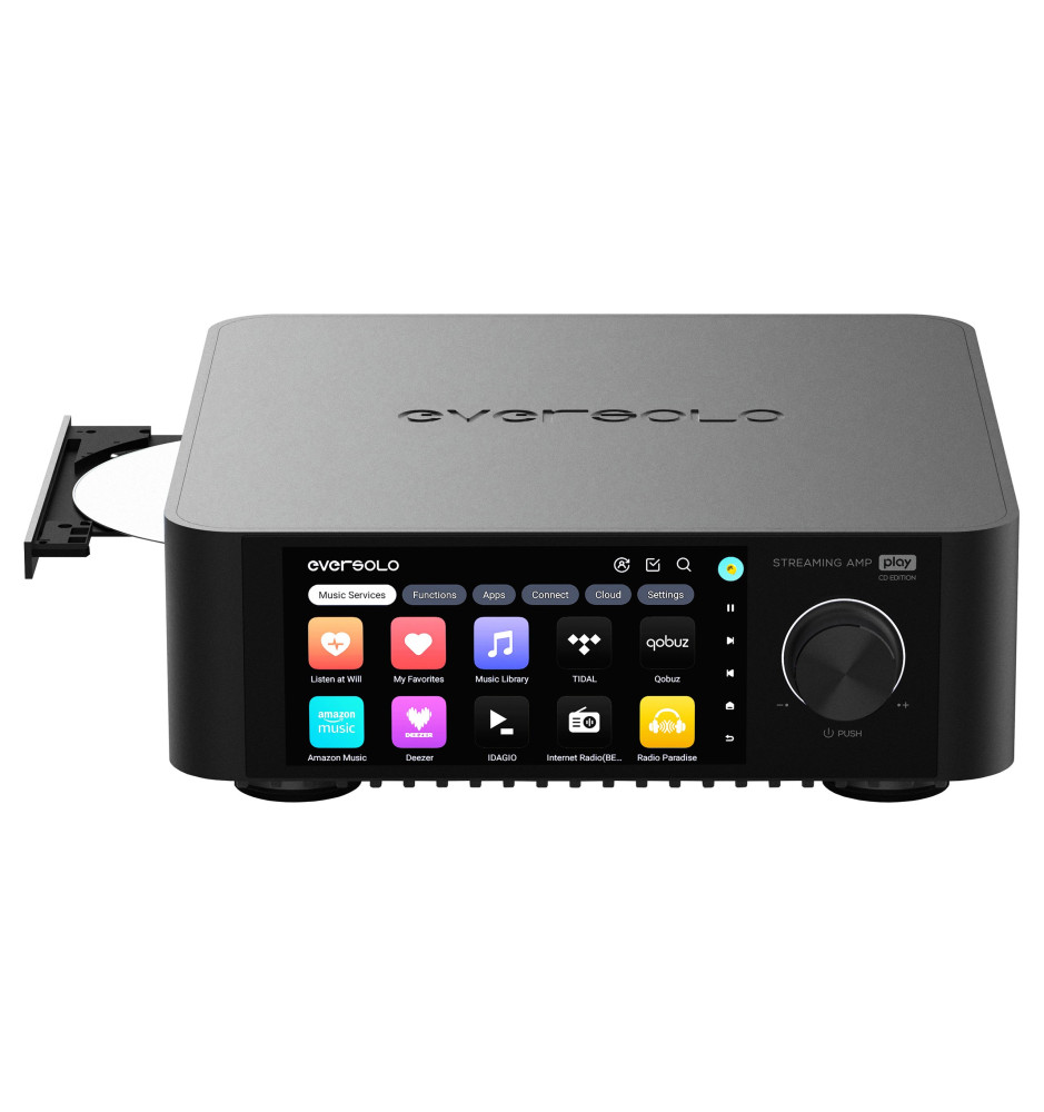 EverSolo Play CD Edition umożliwia bezpośredni dostęp do TIDAL, Qobuz, Amazon Music, Deezer, TuneIn i wielu innych serwisów muzycznych. Dzięki aplikacji EverSolo Control, dostępnej na urządzenia mobilne, możesz sterować całym systemem z poziomu smartfona lub tabletu.