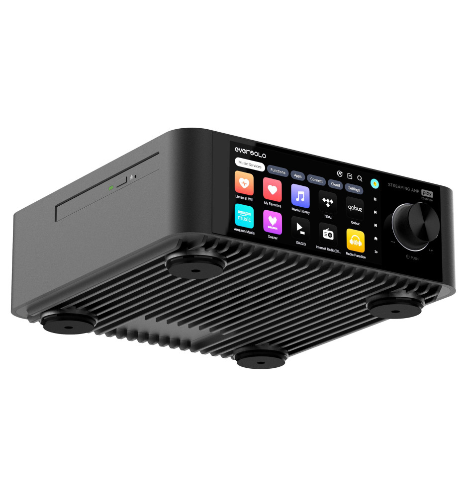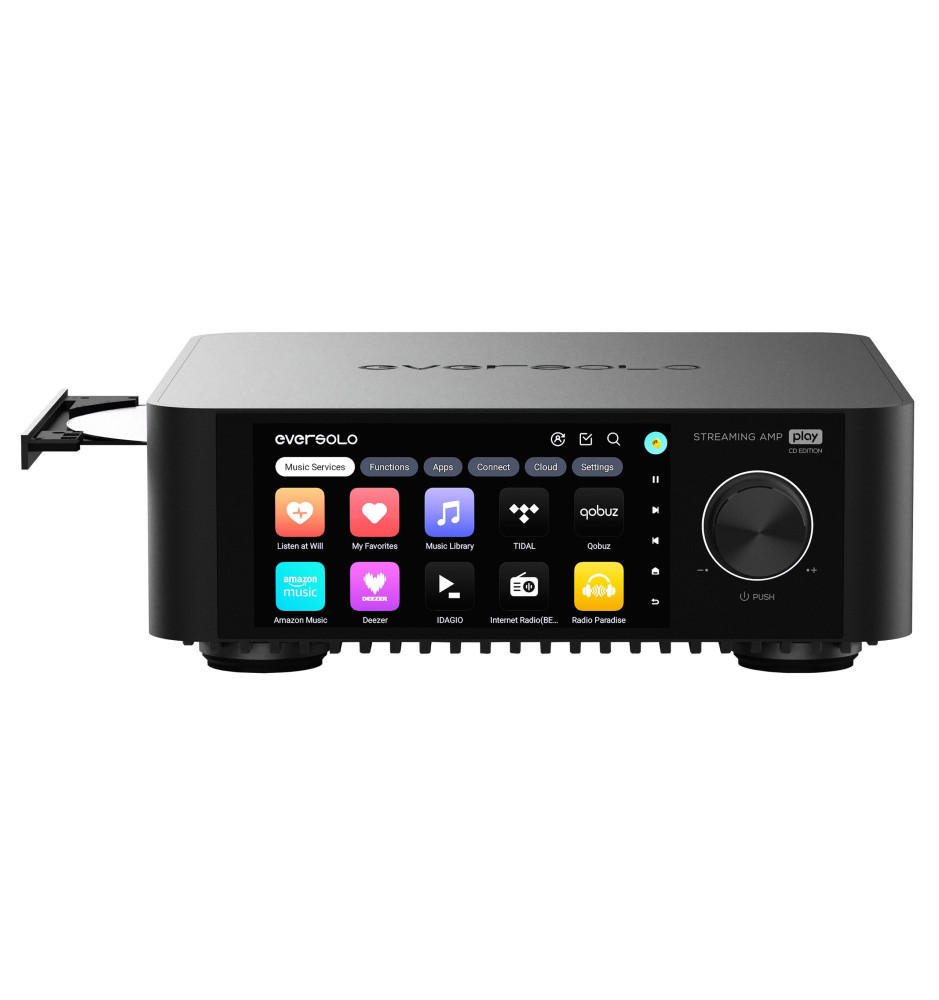 Nowoczesny wzmacniacz stereo typu all-in-one z wbudowanym odtwarzaczem strumieniowym i napędem CD-ROM, który łączy audiofilską jakość dźwięku z wygodą codziennego użytkowania. Dzięki kompaktowej obudowie, dotykowemu ekranowi i szerokim możliwościom łączności, EverSolo Play CD Edition staje się sercem nowoczesnego systemu audio.