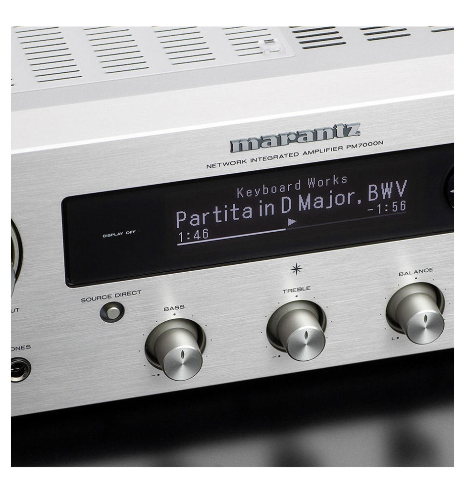 Marantz PM7000N, dzięki wbudowanej platformie HEOS, technologii AirPlay2 oraz możliwości połączenia z siecią Wi-Fi lub przewodowo za pomocą złącza Ethernet, zapewnia dostęp do licznych usług strumieniowego przesyłania dźwięku w wysokiej rozdzielczości. Umożliwia korzystanie z zasobów muzycznych online, obsługując popularne serwisy streamingowe, takie jak Spotify, TIDAL czy TuneIn.