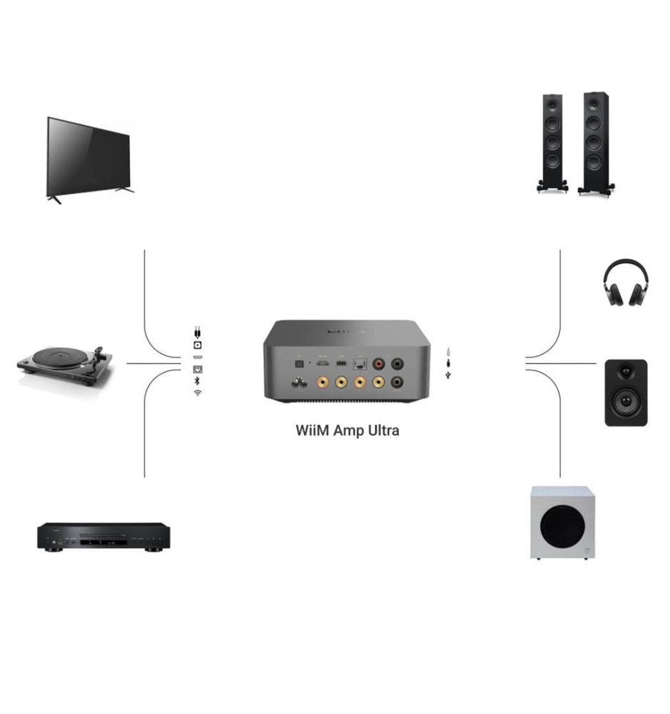 WiiM Amp Ultra to centrum Twojego domowego audio - od muzyki Hi-Res i winyli, po realistyczny dźwięk z telewizora. Piękna, aluminiowa obudowa z 3,5” ekranem dotykowym ułatwia codzienną obsługę, a zaawansowana architektura DAC oraz wzmacniaczy z technologią PFFB gwarantuje szczegółowy, dynamiczny dźwięk w każdej przestrzeni.