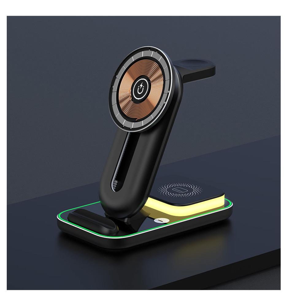 Bezprzewodowa stacja ładująca pozwalająca w szybki i bezpieczny sposób na uzupełnienie energii w aż czterech różnych urządzeniach jednocześnie. Z jej pomocą naładujesz np. swojego smartfona (nawet dwa równocześnie), smartwatcha i etui do słuchawek w tym samym czasie i przy użyciu jednego narzędzia, zamiast podpinać każde z tych urządzeń osobno blokując sobie dostęp do kilku gniazdek sieci domowej.