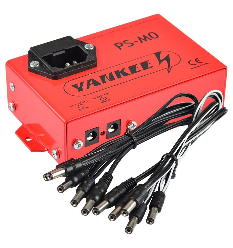 Yankee PS-M0 wyposażony został w dwie w pełni odseparowane sekcje, każda dostarczająca 900 mA, umożliwiając jednoczesne zasilanie do 8 efektów gitarowych za pomocą dołączonych kabli rozdzielających z prostymi wtykami. Wtyki przewodów są kompatybilne z efektami większości popularnych producentów.