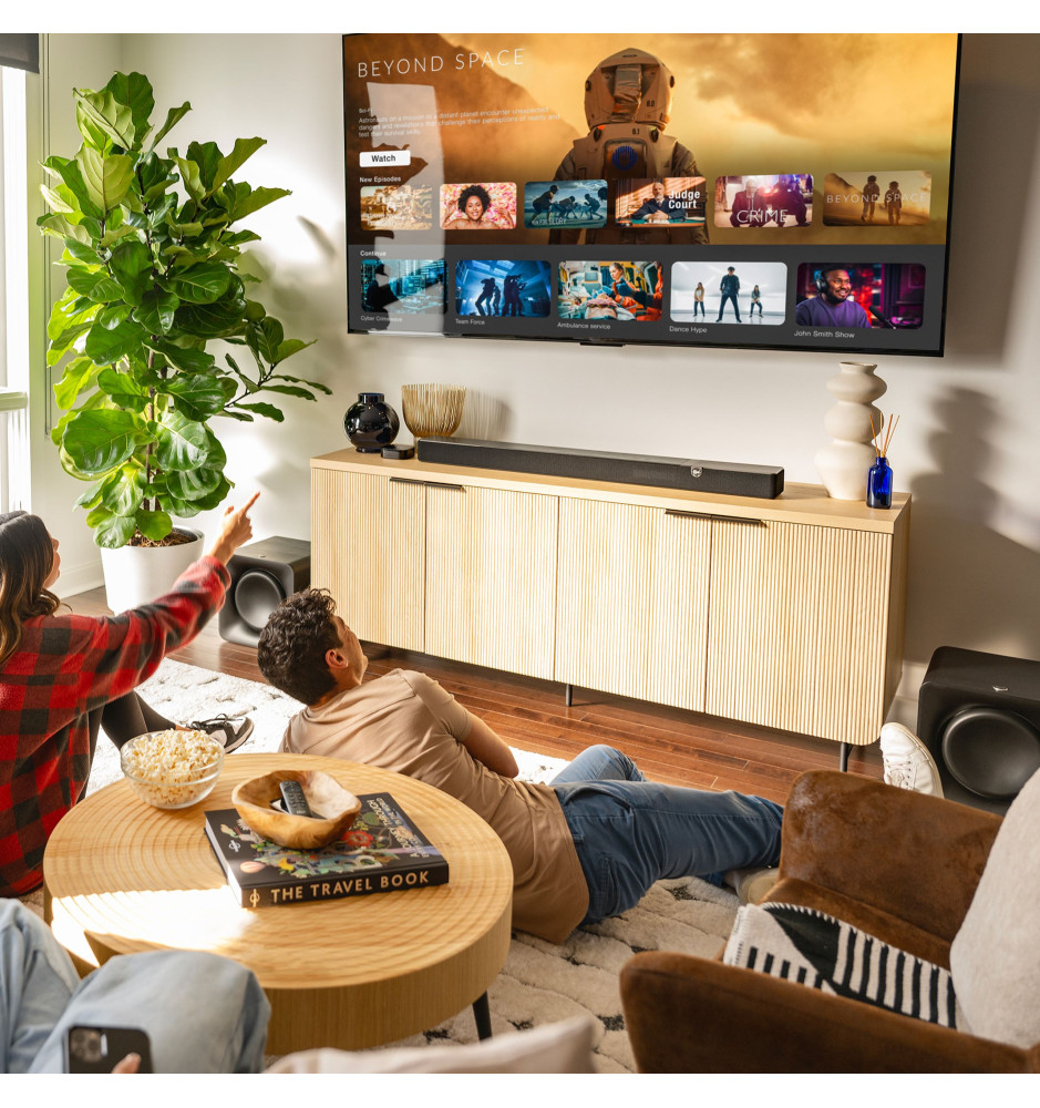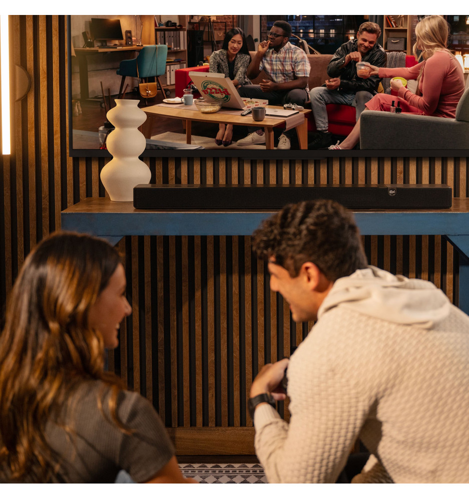 3.1.2-kanałowy soundbar Flexus Core 200 zapewnia immersyjny dźwięk przestrzenny Dolby Atmos z mocnymi basami, dzięki dwóm 2,25" przetwornikom skierowanym do góry, czterem skierowanym do przodu i dostrojonym przez akustyków Klipsch aluminiowym przetwornikom 2,25", dwóm wbudowanym 4" subwooferom oraz odpowiadającemu za kanał centralny głośnikowi wysokotonowemu.