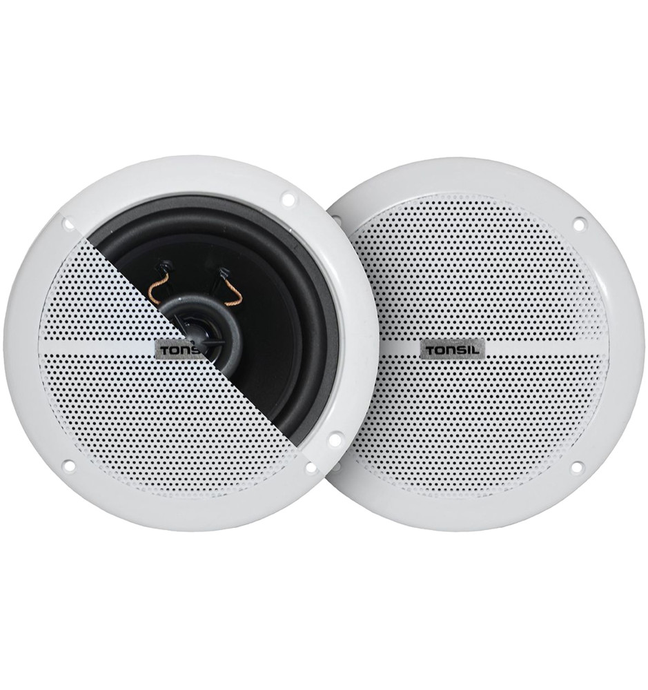 Dwa wewnętrzne dwudrożne głośniki ścienne Tonsil ZGSU 16/2-DR są przeznaczone do montażu w płycie gipsowo-kartonowej. Dzięki większej odporności na wilgoć świetnie sprawdzą się w łazience lub kuchni. Doskonale współpracują z dołączonym wzmacniaczem WS 25.