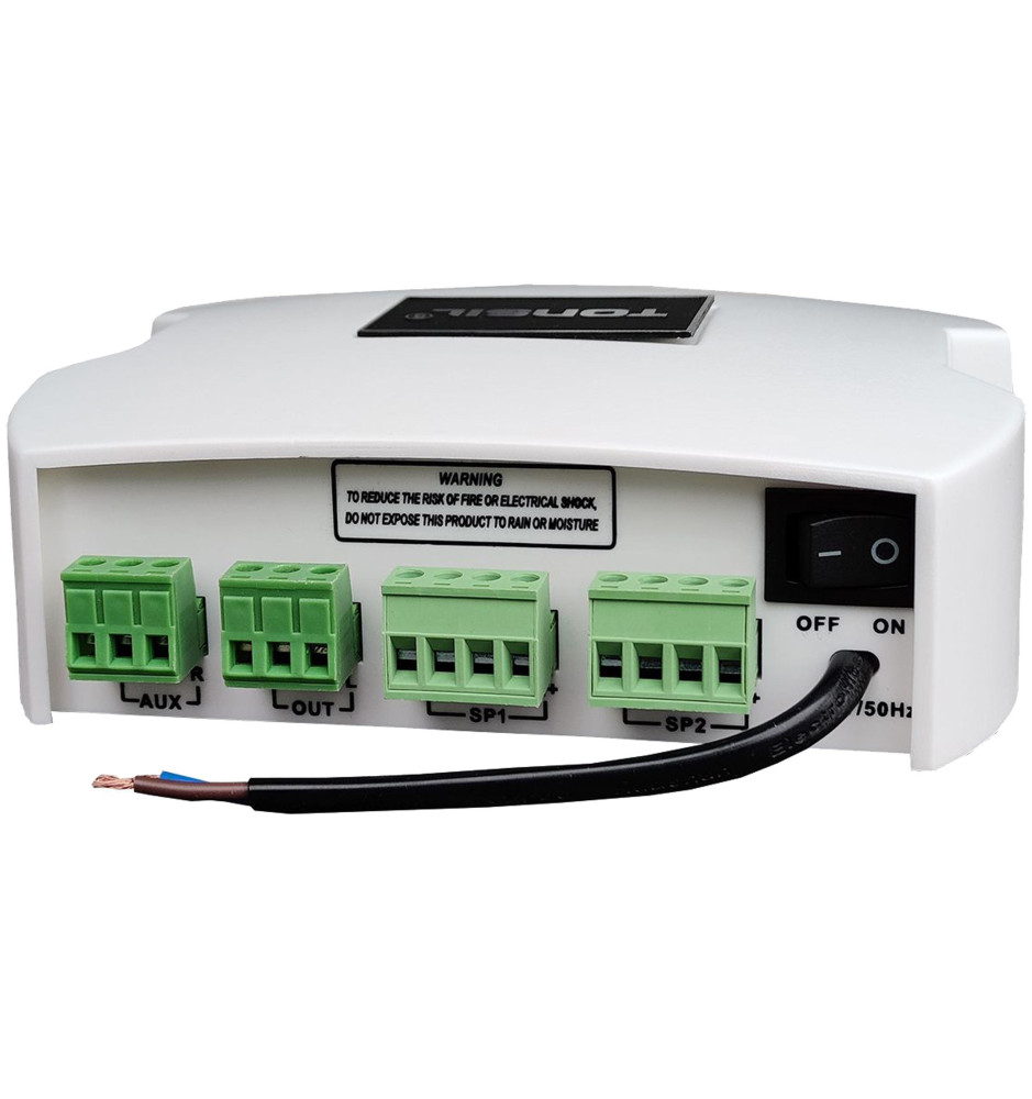 Tonsil WS 25 to wysokiej klasy wzmacniacz 4 x 30W, idealny do napędzenia zestawu głośników sufitowych lub kompaktowych kolumn domowych. Jest w stanie obsłużyć głośniki o impedancji 8 Ohm. Zintegrowany odbiornik Bluetooth umożliwia przesyłanie dźwięku bezprzewodowo ze smartfona lub innego urządzenia wyposażonego w tę technologię, aby bezpośrednio odtwarzać dźwięk w wysokiej jakości.